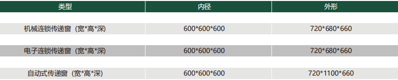主要分为三大类:电子连锁传递窗,机械连锁传递窗,自净式传递窗
