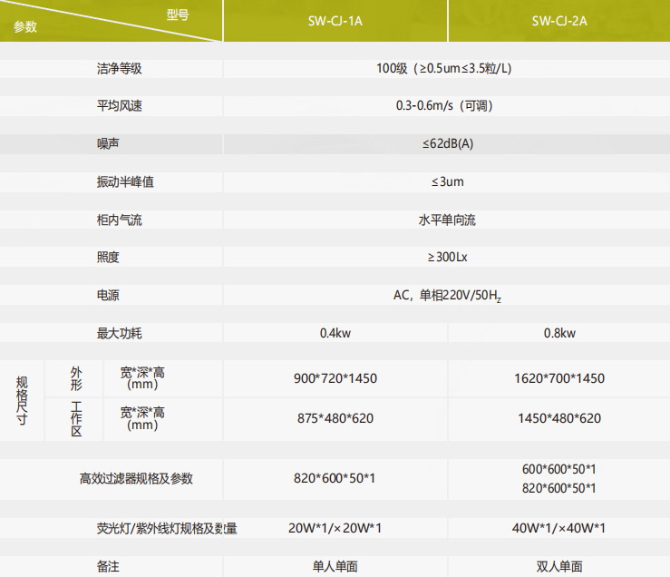 洁净工作台以空气流向可分为水平层流和垂直层流两大形式,在这两大形式下形成了标准 型、医用型、新颖型、分离套入型、桌上型、生物型等9个品种、30个型号规格。